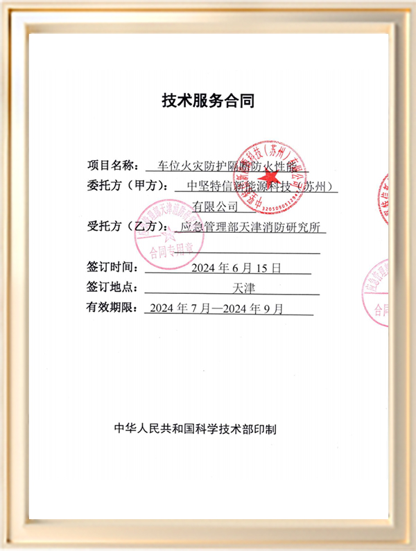 中堅特信新能源科技(蘇州)有限公司是由蘇州科技大學材料學院的技術骨干和天鼎源創公司以及中堅新能源合伙企業發起成立的,致力于新能源汽車和儲能電站的阻燃防護,以技術進步最大程度的保證生命和財產安全。公司聯合蘇州科技大學材料學院唐院士團隊和天鼎源創公司重大創新團隊進行新材料的開發,創造出耐1000℃及以上的耐高溫隔熱阻燃非金屬柔性材料,2A級生態滅火劑,A1級納米陶瓷復合隔熱板以及高燃值火災防控隔斷,在新能源火災防護領域用途廣闊。